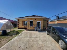 Одноэтажный дом 107кв.м с современным ремонтом, полностью готов к проживанию. Вода с водонапорной вышки (есть всегда), канализация переливной септик (2 колодца), электричество 380В. Баня с парной, помывочной и комнатой отдыха. Участок 7,3 сот, ровный, прямоугольный. По периметру серый стильный забор, откатные автоматические ворота. Вокруг дома залита отмостка, площадка под авто, дорожки, снегодержатели, водосточка. Дом грамотно расположен, осталось много полезного пространства под полноценную баню, большой каркасный бассейн и осталась большая площадь под место отдыха или огород. Для летнего отдыха есть большая угловая терраса с выходом из кухни.