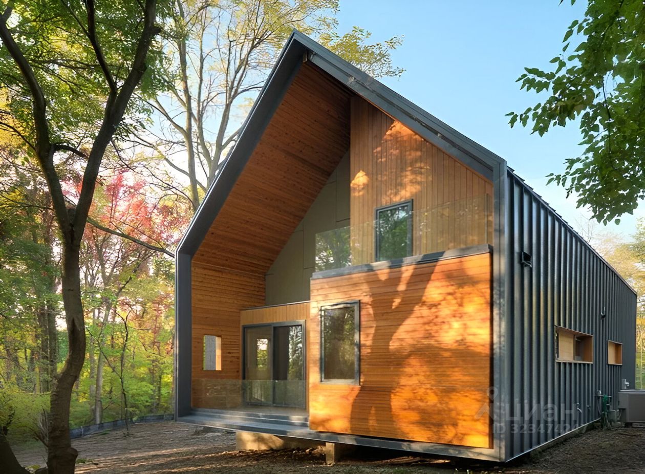 Кровля: двухскатная металлическая из профлиста RAL 7024 серый графит.