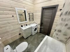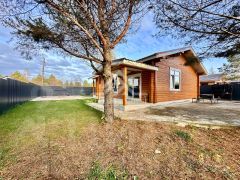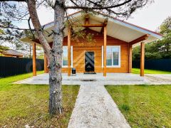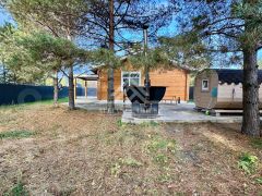 Участок огорожен забором. Откатные ворота. На участке посажен газон, растут сосны. Вокруг дома выполнена отмостка. Парковка на несколько машин забетонирована. Своя скважина глубиной 140 м. Есть баня, мангал, чан на дровах, бытовка.