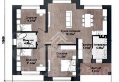 Входная группа, просторная кухня-студия с выходом на террасу, 3 спальных комнаты, санузел, котельная
