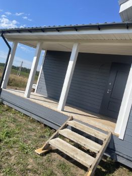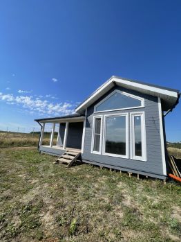 Внутри большая кухня студия с панорамными окнами и вторым светом, санузел, прихожая и спальня . Электрика по дому вся проведена. Остается только обшить внутренние стены и натянуть потолок .