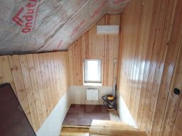 Отделка мансарды ЭКО материалом вагонкой, что придает дому загородный стиль.