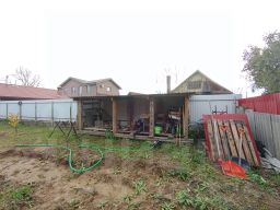 Дом расположен на просторном участке 7,7 соток. На участке расположен просторный гараж с подъёмными воротами, детский домик для игр, навес для хранения садовых инструментов и шашлычно-мангальных принадлежностей. По фасаду установлен новый современный забор с откатными воротами.