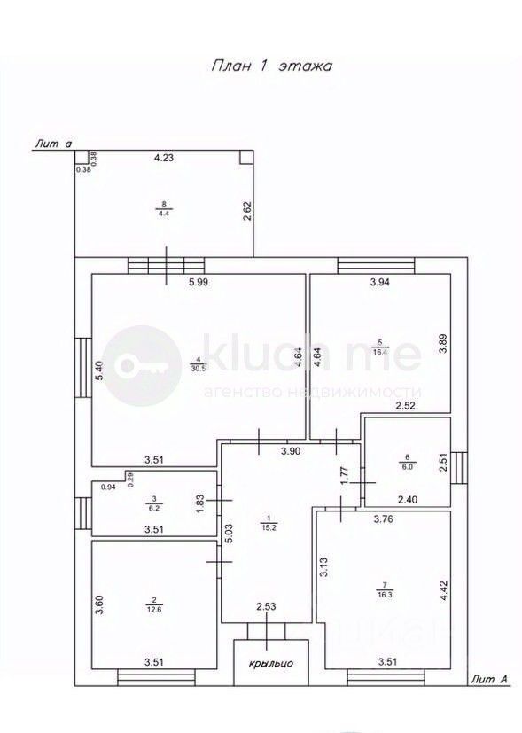 - 3 спальные комнаты 16.4, 16.3, 12.6 кв.м