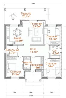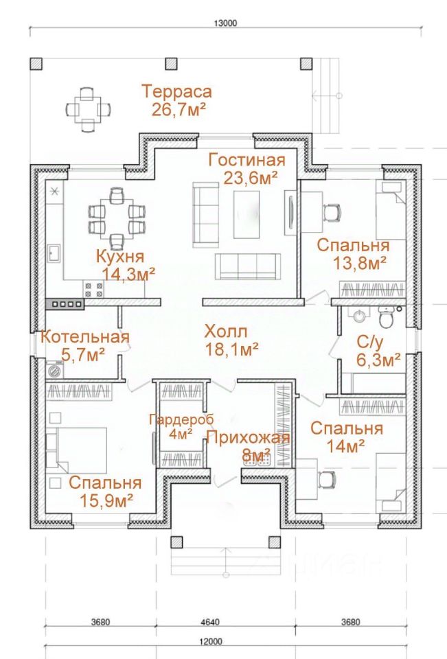 Шикарные спальни по 14 и 16м². Просторная кухня - гостиная.