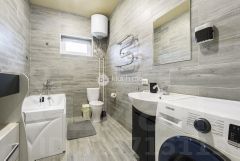 Отделка санузла из керамической плитки 20*60, полноценная ванная, тумба в эмали с накладной раковиной и настенным освещением, водонагреватель;