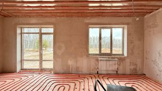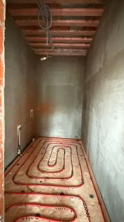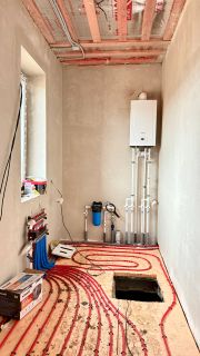 газовый котел, установлена система теплые полы + радиаторы.