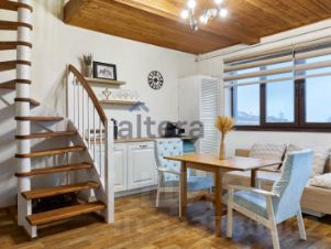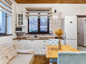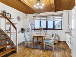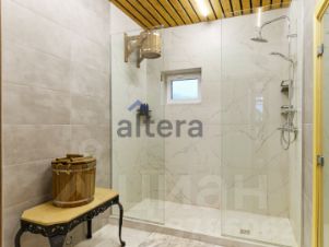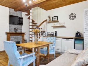 Первый этаж: кухня-гостинная с камином и винтовой лестницей на второй этаж, баня-сауна, душевая, санузел - оборудован теплыми полами;
