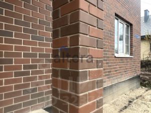 комбинированный каркас облицован кирпичом, фундамент лента ширина 500 мм высота 750 мм , три арм.пояса монолит, плита 200 мм ячейка 200/200, бетон М 300