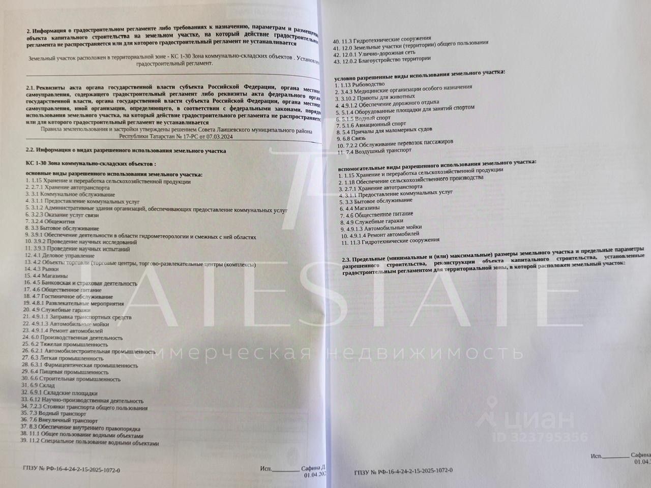 Информация о видах разрешенного использования земельного участка на второй фотографии
