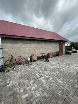 На территории есть гараж на 2 автомобиля. Сарай. Баня на дровах из сруба. 2 теплицы. Так же есть недоделанная летняя беседка с террасой 6*6.