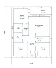 Входная группа, прихожая, котельная комната, просторная кухня-гостиная с выходом на террасу, 2 жилые комнаты, мастер-спальня с санузлом и гардеробной, большой санузел;