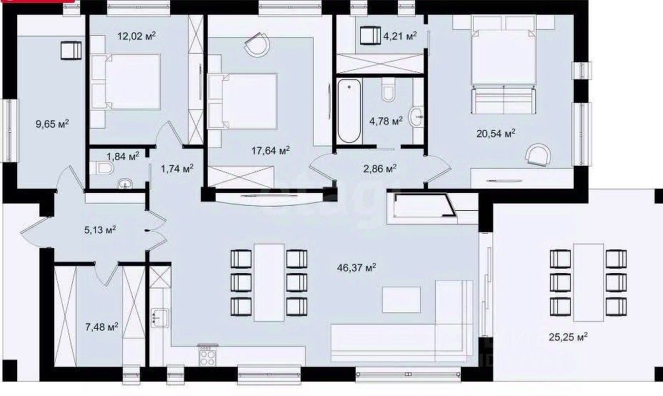 Площадь дома: 135,7 кв. м. с просторной террасой в 25кв.м — это идеальное пространство для просторного проживания большой семьи,