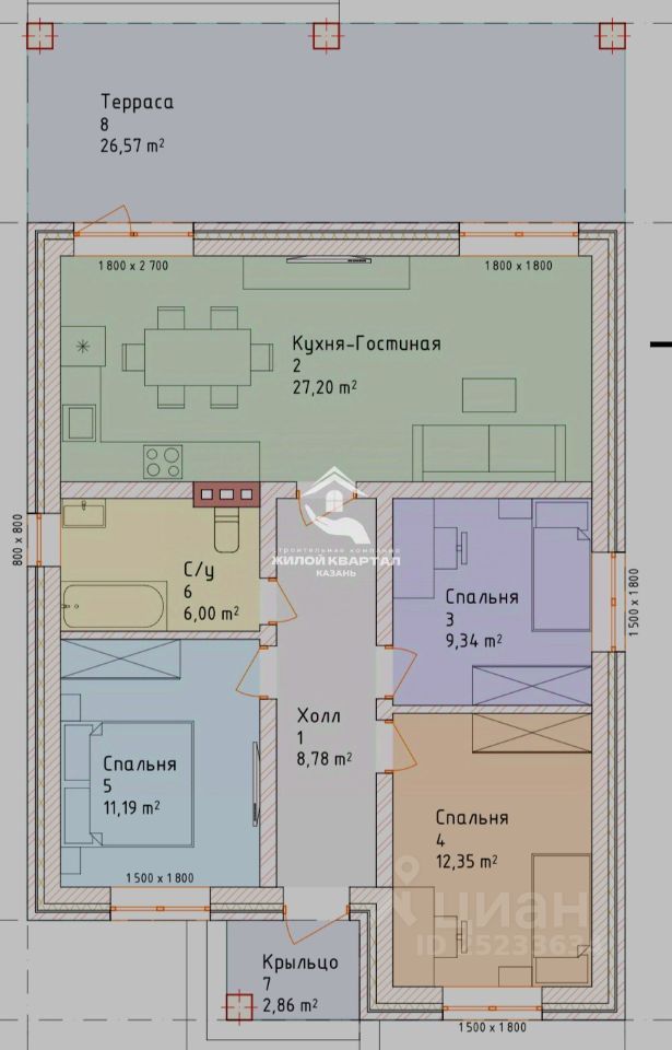 Одноэтажный дом с хорошей планировкой - в доме три спальные комнаты , санузел , просторная кухня гостиная , огромная терраса и удобная входная группа .