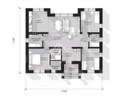 Входная группа, санузел- 2, кухня-гостиная; 4 спальные комнаты;