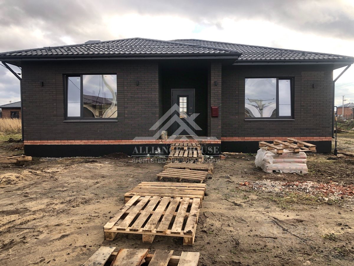 Панорамные окна, облицовка - клинкерный керамический кирпич, крыша - металлочерепица