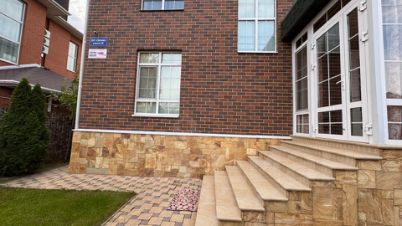 • полностью благоустроенный зонированный участок с дорожками и с заездом под
