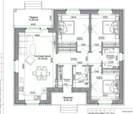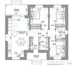 Просторная кухня-гостиная, 3 уютные спальные комнаты, широкий коридор.
