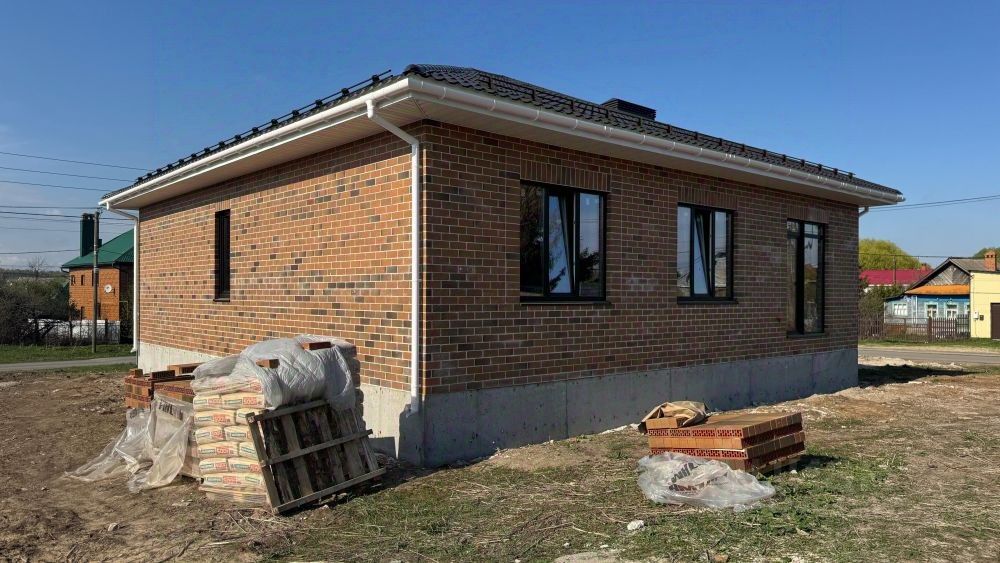 Стены дома:облицовочный кирпич и крупноформатный керамический блок Кетра 380.