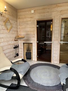 На территории есть баня тоже полностью укомплектованная всем необходимым и тоже с тёплыми полами , отапливается дровами . Есть большой хоз. блок для хранения дров. А как же без него , ведь всё продумано.