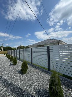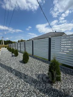 Забор по всему периметру . На участке газон и очень много места для творчества и ландшафтного дизайна.