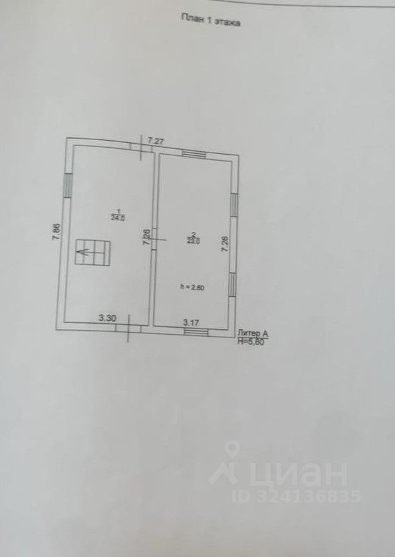 1 этаж: кухня 24 м², гостиная 23 м²