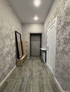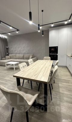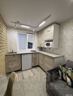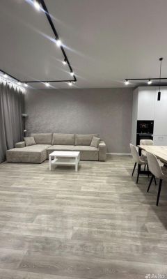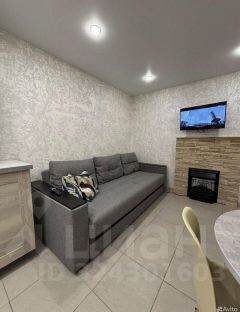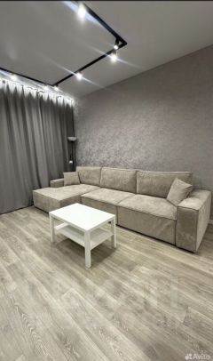 Большая жилая комната с кухней, диван, мебель для хранения вещей