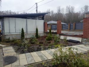 Двор обустроен декоративными деревьями и кустарниками, плодовый сад с начинающим плодоносить фруктовыми деревьями и ягодными кустарниками. Имеется зона огорода- высокие грядки и теплица 8*3м., мангальная зона, тандыр, качели, Достаточно места для постройки детской площадки, зоны барбекю или дополнительных построек.