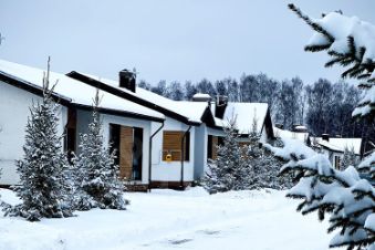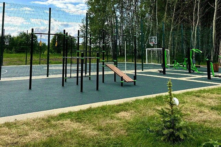 Все коммуникации в поселке, охроняемая территория со своим КПП.