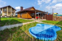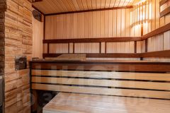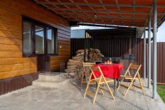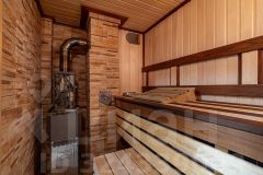 Баня построена из кирпича и облицованным сайдингом под дерево, также предусмотрено всё, для комфортного отдыха, отапливается как дровами так и газом (котел Вахi):