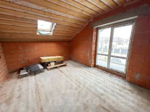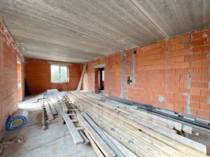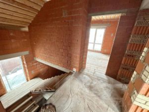 Цокольный этаж- фундаментные блоки, материал стен - porotherm 44 + облицовочный кирпич, кровля - мягкая черепица Docke коллекция Zurich, установлена водосточная система, снегозадержатели. Окна - Deceunninck Space с теплопакетами, фурнитура Siegenia ( Германия), входная дверь - Bastion. Готовый металлический каркас будущей лестницы.