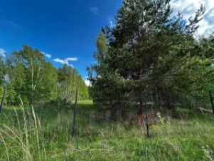 На каждом участке, примерно по 2 сотки площади занимает березовый и сосновый высокоствольный лес.