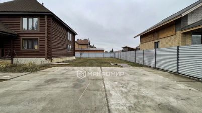 Участок ровный, угловой — это большое преимущество. По периметру установлен забор из профнастила. На территории залита плита под навес для парковки автомобилей.