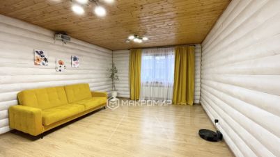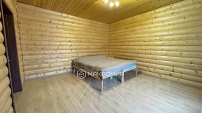 Дом построен полностью из бревна, с мягкой кровлей и утеплённым цоколем.