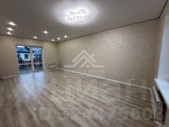 На полу ламинат, санузлы в керамограните. натяжные потолки, обои с светлых тонах, современные качественные межкомнатные двери.