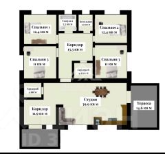 Входная группа, просторная кухня-гостиная с выходом на террасу, 4 спальных комнаты, 2 санузла, отдельная котельная, гардероб