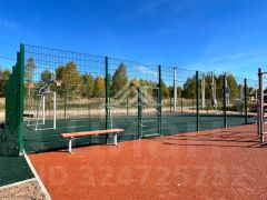 Асфальтированная дорога, ходит школьный автобус, новая детская площадка
