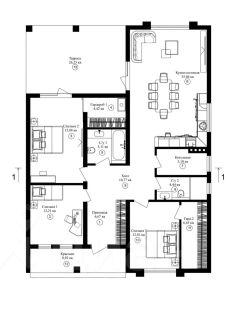 Продуманное зонирование: приватные спальни и общая зона для встреч, отдыха и семейной жизни.