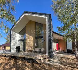 -Фасад. Отделка комбинированная, многокомпонентная, но везде утепление 100 мм. Частично отделка фиброцементным негорючим сайдингом Cedral , частично штукатурка и профнастил МП35.