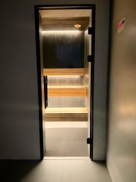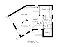 Техническая зона на первом этаже очень функциональна: Котельная-прачечная является транзитным помещением для санузла и сауны. Т.е во время банных процедур постирочная-котельная используется как раздевалка, с.у как помывочная для бани.