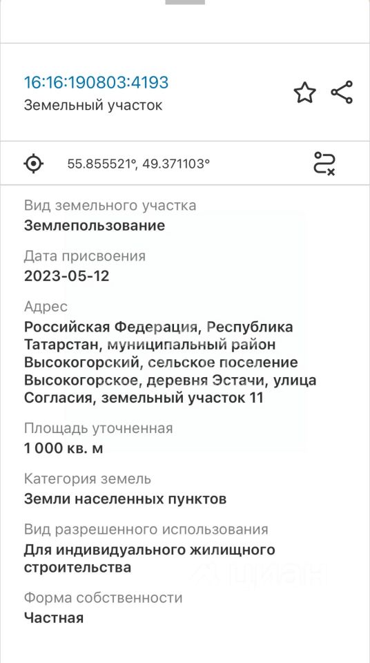 Кадастровый номер: 16:16:190803:4193 (ИЖС)