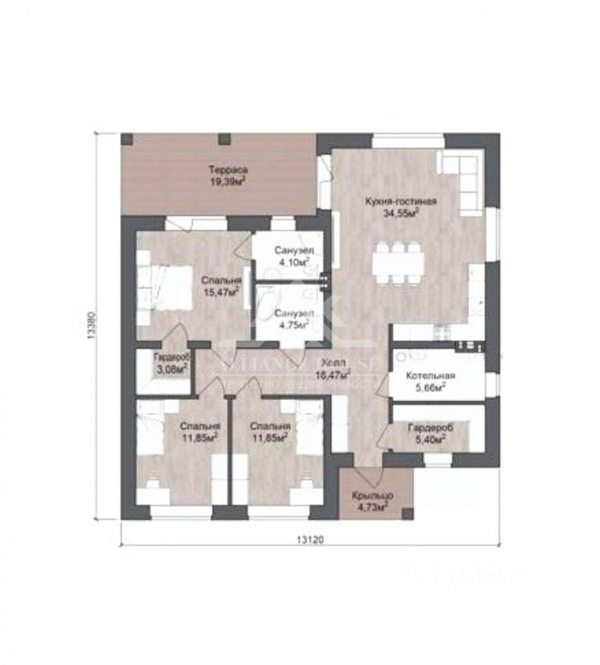 1 этаж: Входная группа, гардеробная, котельная, просторная кухня-гостиная со вторым светом и с выходом на террасу, мастер спальня с санузлом и гардеробной, 2 жилых комнаты, большой санузел;