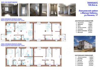 Продам ТАУНХАУС 106,9 кв.м. на 2,5 сотках в поселке Малые Кабаны Лаишевского района с ремонтом ИНФРАСТРУКТУРА: направление на аэропорт формирует отличную транспортную развязку и инфраструктуру, отсутствие пробок на дорогах, до города 10, до центра 20 минут. Поселок активно развивается, новая трасса на аэропорт, широкая развязка, в самом поселке обновленная асфальтированная дорога, современный детский сад, всевозможные супермаркеты и магазины, аптеки и т.д. До школы в Большие Кабаны ходит автобус. До городских учреждений и станции метро Проспект Победы 15 минут. ЛАНДШАФТ: блоки домов на участке расположены тыловыми частями друг к другу, так что нет ощущения блокированной застройки, т.е. входы в дома расположены с противоположных сторон. Таким образом с соседями не имеется никаких пересечений и контактов. Площадь участка позволяет поставить на нем навес, гараж, банный комплекс, и все остальное. ПРОЕКТ: индивидуальный проект, выполнен по проекту с расчетом всех нагрузок, несущие стены из кирпича с облицовочным кирпичом и утеплителем. Плиты перекрытия. Кровля выполнена по ГОСТу, несущая стена поднята выше перекрытия между вторым этажом и чердаком, что предотвращает задувание ветра под крышу. Между соседними блоками стена 300мм. В доме 4 изолированных спальни, кухня-гостиная, два санузла. СОСТОЯНИЕ: евро ремонт, в интерьере использованы современные оттенки, лестница выполнена в стиле ЛОФТ. Теплый водяной пол от двухконтурного котла. Трехкамерные стеклопакеты. Своя скважина, септик на З кольца, газ, свет в доме. Рядом: Столбище, Большие Кабаны, Сокуры, Усады, Песчаные Ковали, Габишево, Урмай, Сапуголи