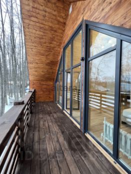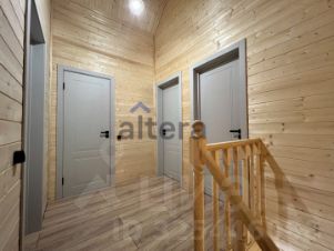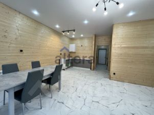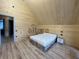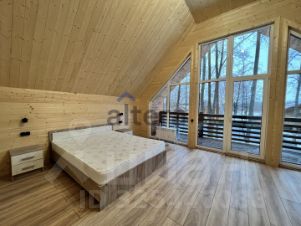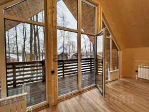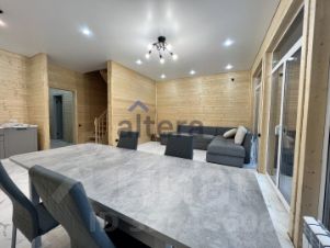 В доме 3 комнаты и кухня гостиная, комнаты светлые за счет большого количества окон. В гостиной и спальне окна в пол.