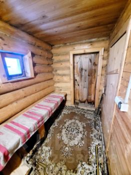 Есть баня из сруба на дровах.