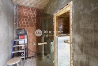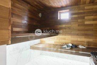 На участке построен банный комплекс из кирпича, площадью 22 кв.м, в котором имеется просторная зона отдыха с панорамными окнами, отдельная моечная зона с инсталяцией и душевой, парилка, облицованная деревянной вагонкой.