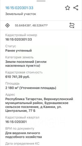 Кадастровый номер: 16:15:020301:33 (ИЖС)