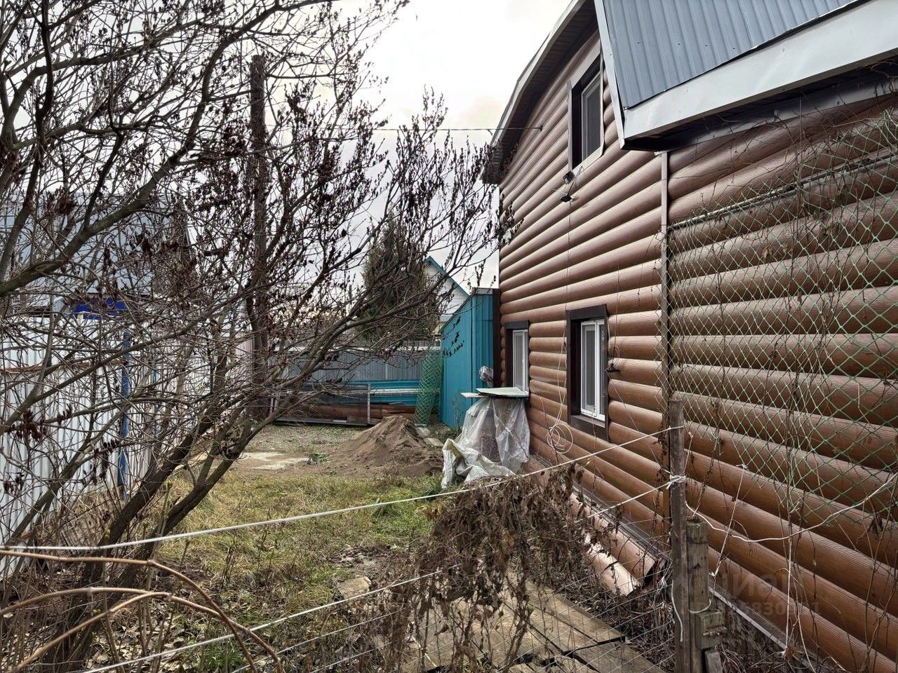 Дом из кирпича, утеплен пеноплекс 5. Обшит металлосайдингом под бревно.