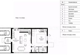 1 этаж: тамбур, кухня-гостиная, бассейн с сауной, санузел.