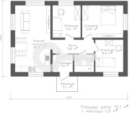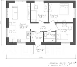3 спальниПросторная кухня-гостинаяПрихожаяСанузелТерраса 10,5 м² — в подарок